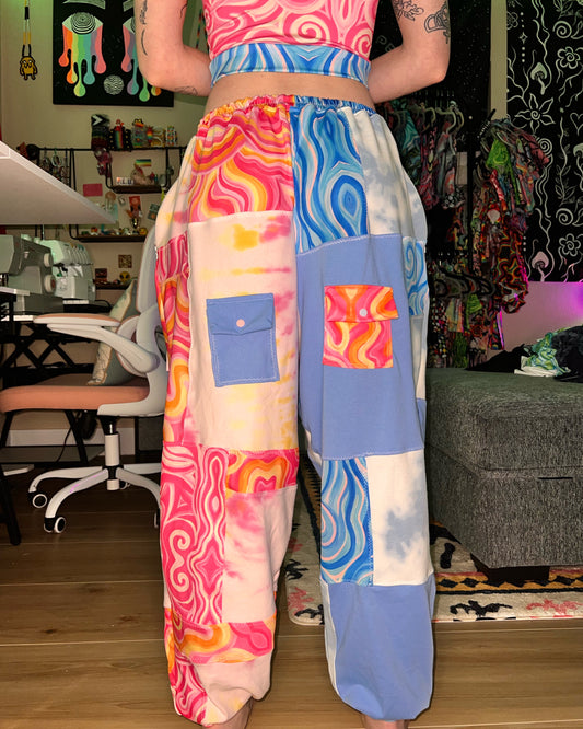 Patchwork Cargo Flow Pants "Aqua X Princess" Design