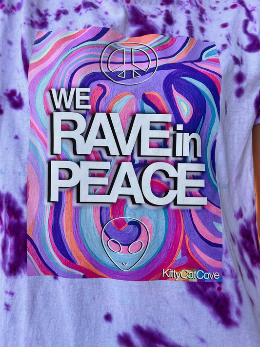 UP-CYCLED Purple Hand Tie Dyed "We Rave In Peace" Amethyst Art Print T-Shirt