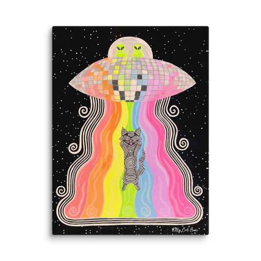 Hand-Painted "Long Kitty Space Party" Artwork (Canvas)