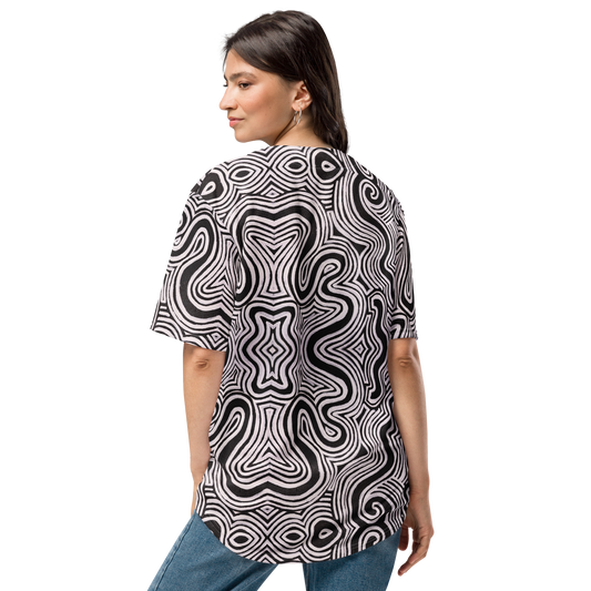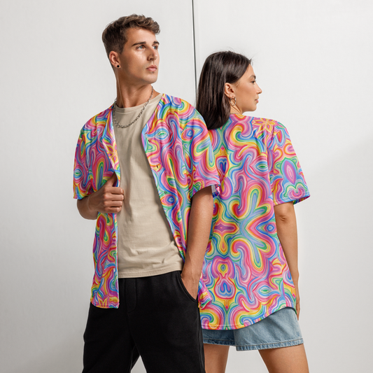 Soft, breathable, moisture-wicking unisex button up jersey created in your choice of hand-painted designs, made from 100% recycled material fabric
