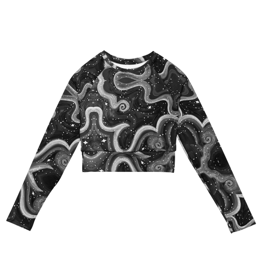 Long Sleeve Crop Top- "Long Kitty Space Party" Artwork Design