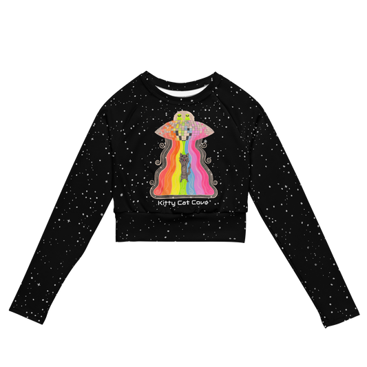 Long Sleeve Crop Top- "Long Kitty Space Party" Artwork Design