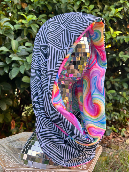 Reversible Rave Hood: "Hypnosis" x "Helix" Hand-Painted Designs