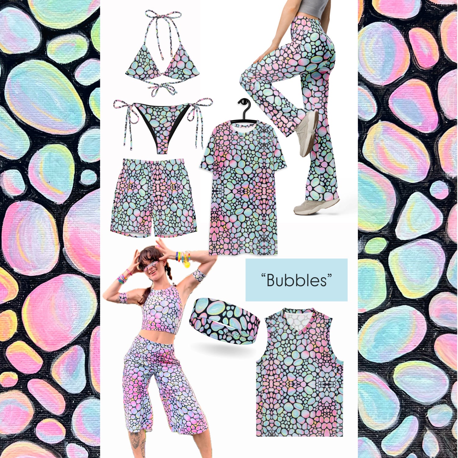 This hand-painted design embodies the energy of bubbles peacefully floating through the air, spreading joy everywhere they go