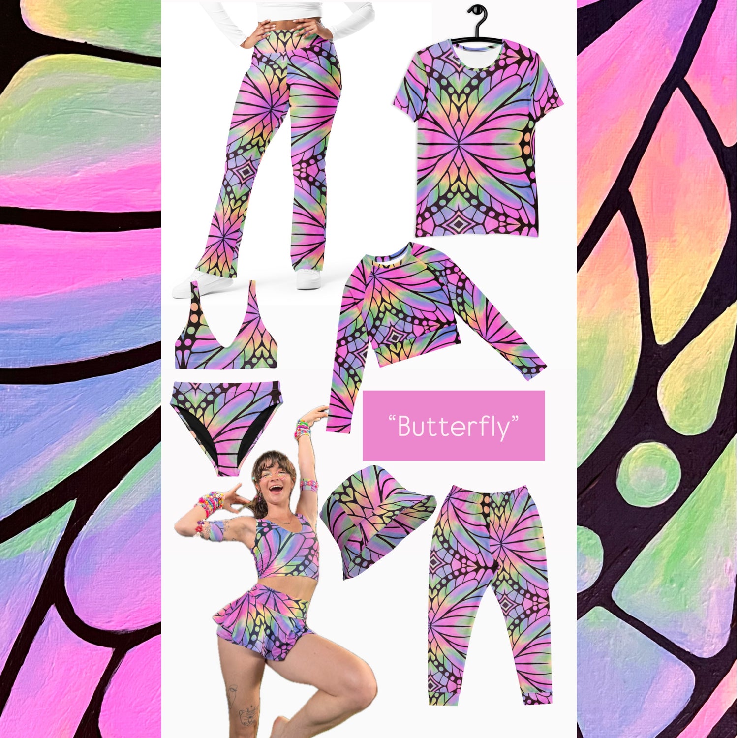 This hand-painted design embodies the majestic energy of a butterfly gliding through the air on a bright beautiful day