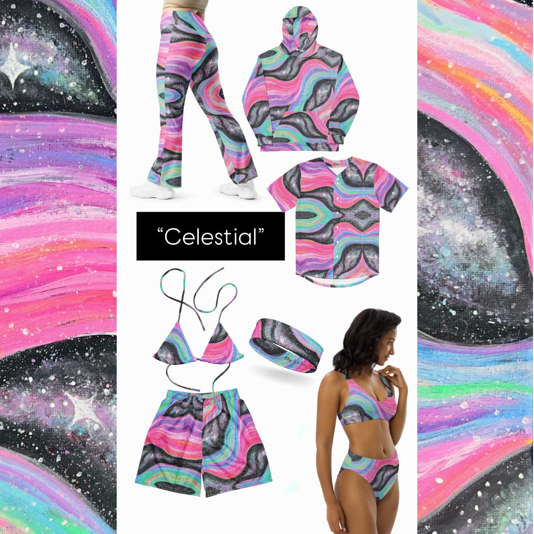 This hand-painted design embodies the intergalactic colorful light of galaxies that shine throughout universe