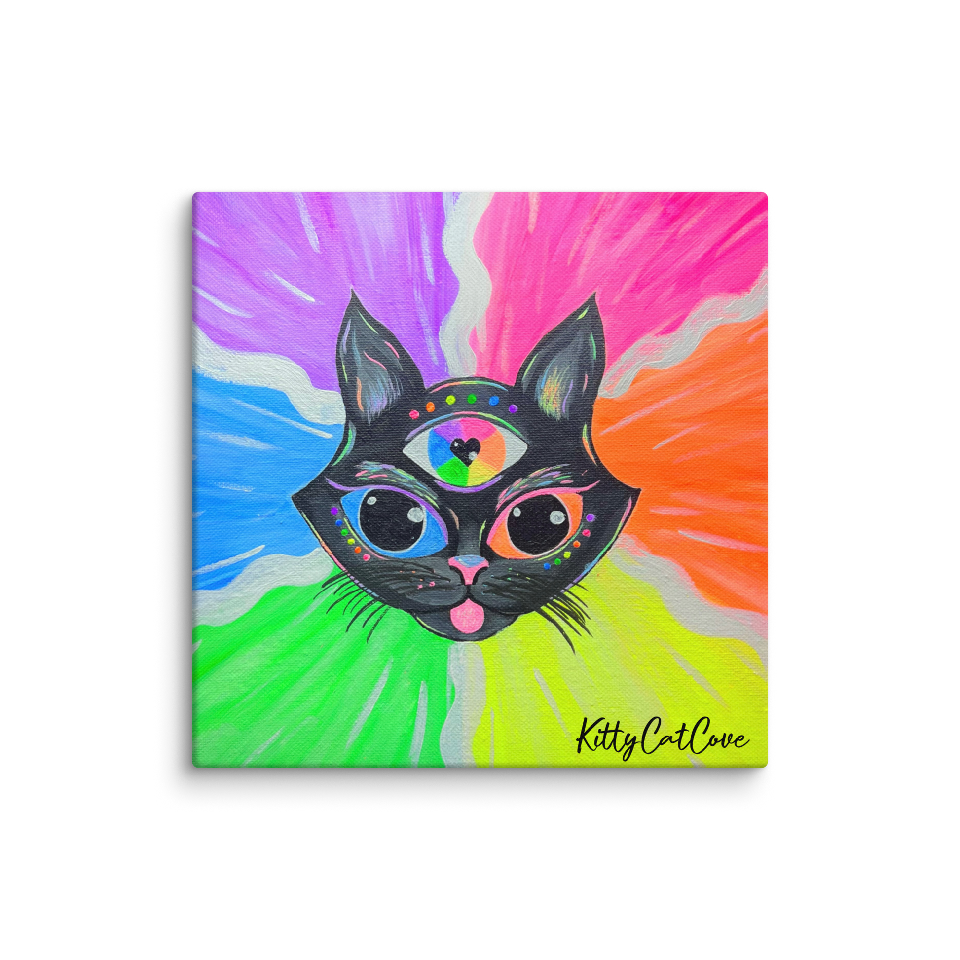 A High Definition print of my hand-painted "Kitty Cat Cove" artwork, printed on a fade-resistant canvas with hanging hooks attached