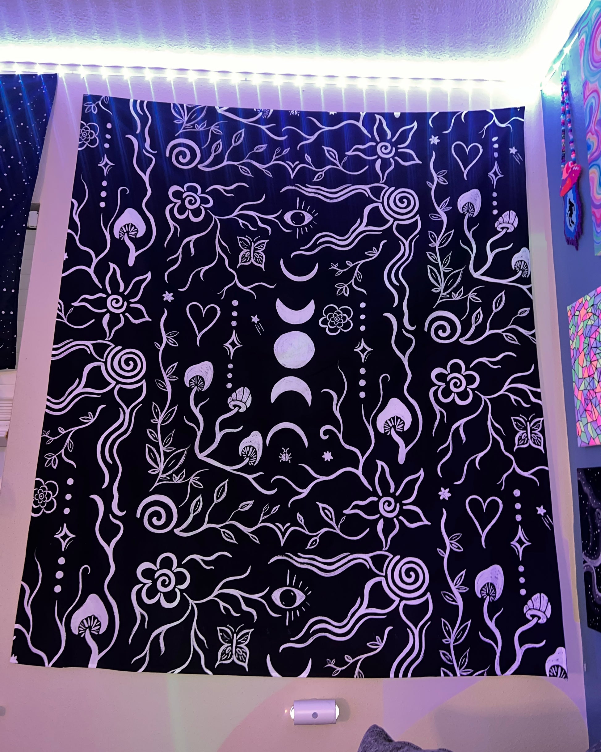 Wall tapestry created from hand-painted "Midnight Magic" Design