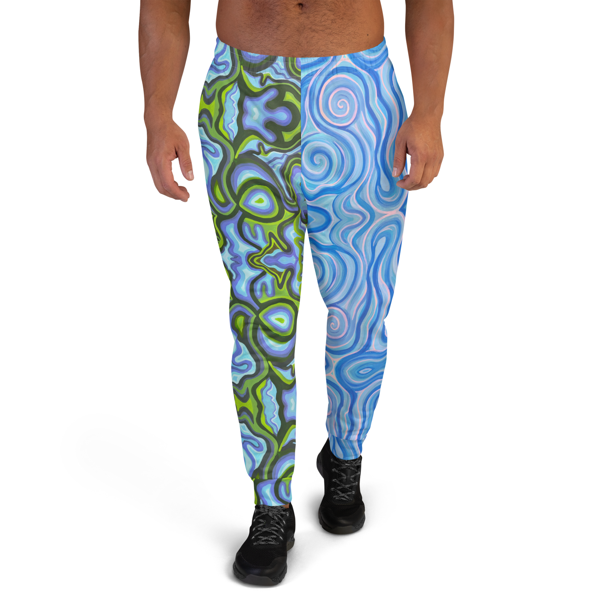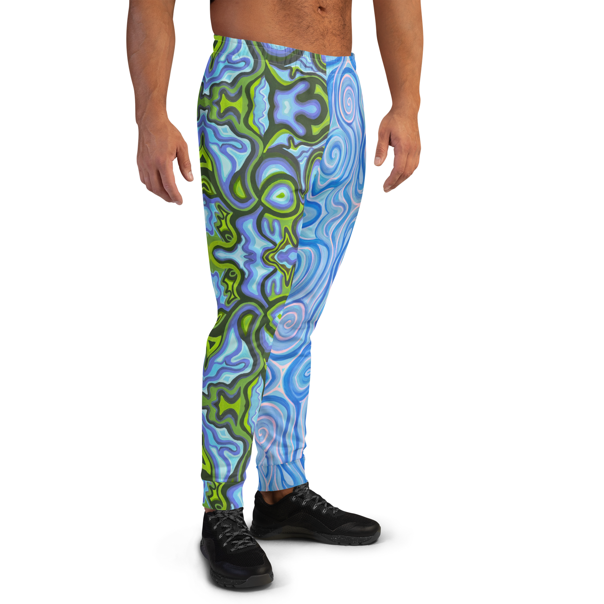 Soft, warm, cozy unisex jogger style sweatpants created in my hand-painted "Gaia" and "Aqua" design. Featuring a soft brushed fleece fabric inside, cuffed ankle bands, 2 pockets, an elastic waistband, and an internal drawstring