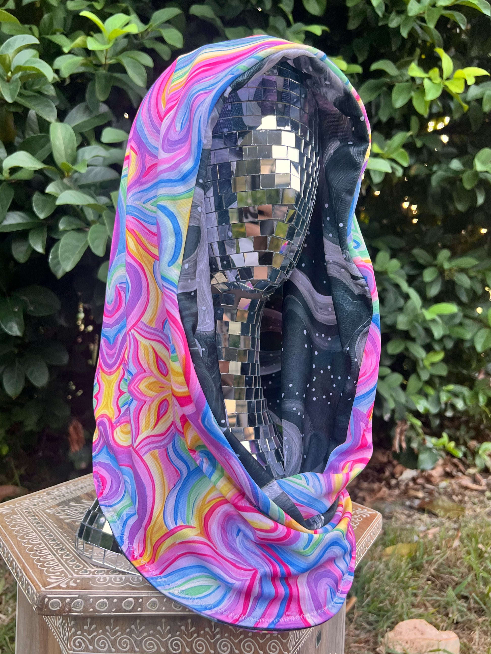 Reversible Rave Hood: "Cosmic" x "Unicorn" Hand-Painted Designs